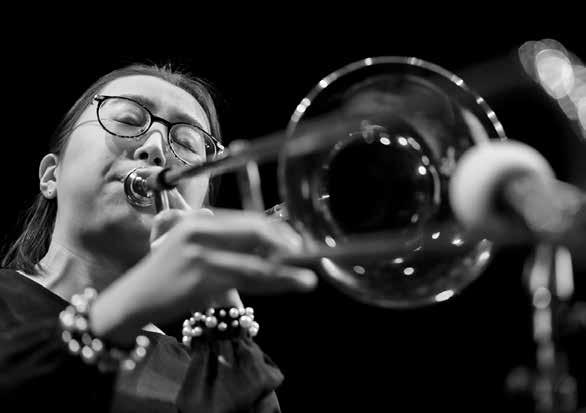 little or no acting experience. “We got thrown in the pool with the acting thing,” Kerber said. “Damian [bassist Damian Nueva Cortes] and Lada [drummer Lada Obradovic] had more comprehensive work with our on-set dialogue/acting coach, Dany Hericourt, but for us other three (trumpeter Ludovic Louis and saxophonist Jowee Omicil, in addition to Kerber) it was kind of the learnby-doing method.” As for Kulig, who received critical acclaim for her role in the 2018 historical drama movie, Cold War, Kerber