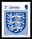 The stamp features an illustration of the flag of Jersey, a red saltire on a white field and the Jersey crest. More information on page 10.