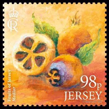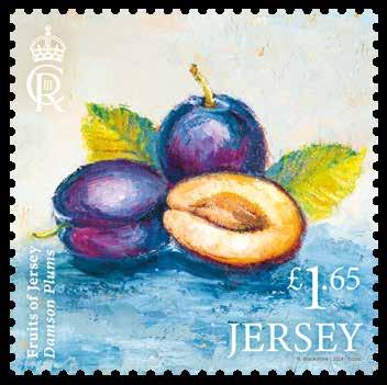 Fruits of Jersey issued Thursday 4th July 2024 features an array of fruits, which have been grown on the Island. Each fruit included in the stamp issue demonstrates Jersey’s ability to cultivate food usually associated with warmer climates.