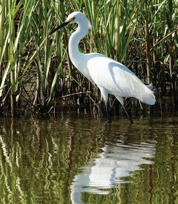 While leaving the Dutchman’s restaurant on Cedar Bonnet Island, I notice a lone diner in the Manahawkin Bay. A snowy egret, white as the foam on a breaker, takes small, erratic steps on reed-like black legs. Its tiny bead of an eye peers into the water, and its body hovers just above the bay’s surface, as still as a ceiling. Then, like a spring, the egret extends its S-curved neck and spears the bay’s sun-glittered surface with a long, pointed bill, leaving ripples as perfect as any Olympic diver’s. When it turns and faces us, I am amazed that its body seems as thin as a pair of scissors.