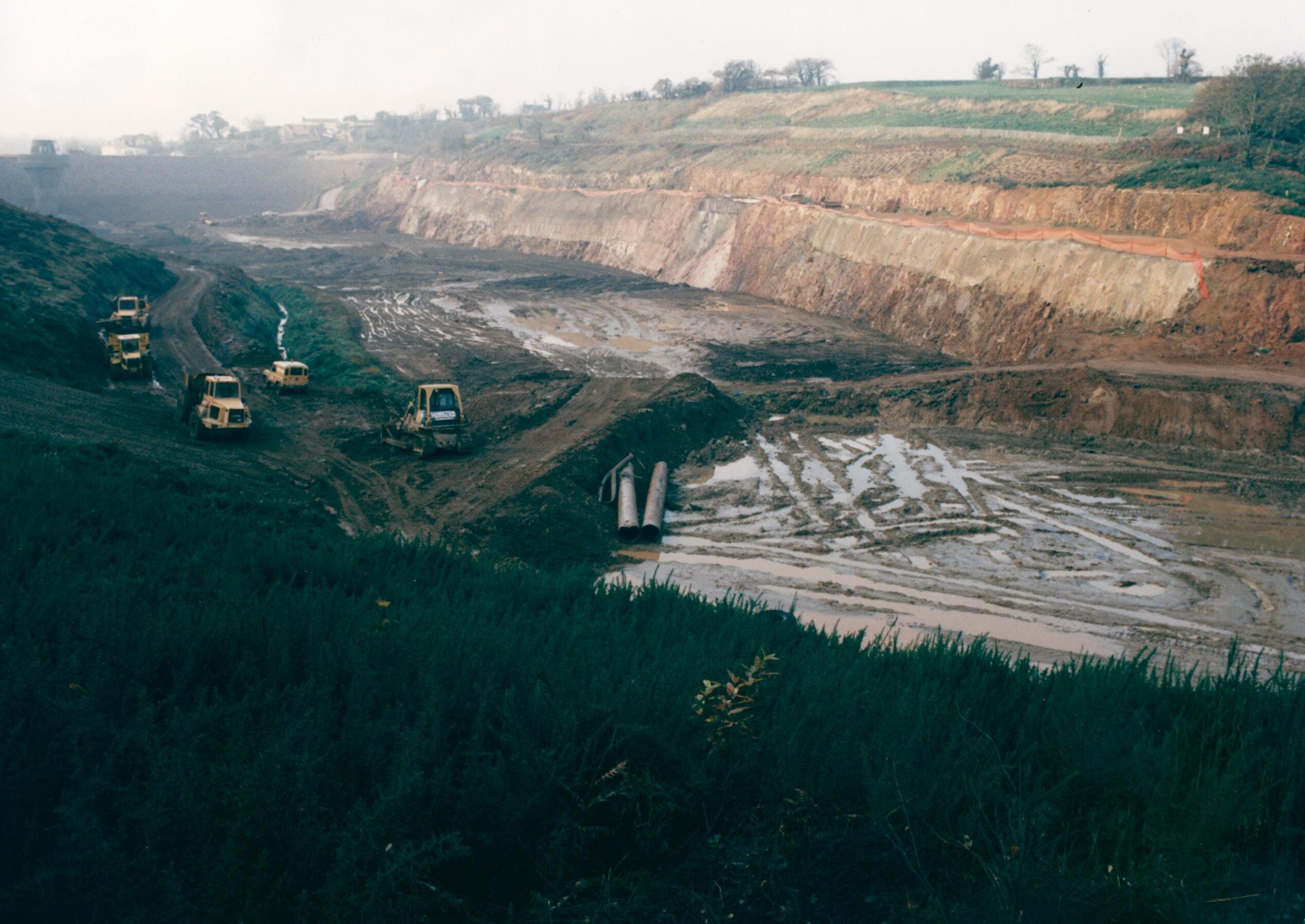 On the 6th April 1989 a contract was awarded to Sheppard Hill Ltd to construct a Rockfill embankment dam, incorporating a bituminous concrete core as the water proof membrane. Only six months into the contract, the contractor was declared en-desastre and work was halted. After much negotiation, the contract was re-let to MJ Gleeson Ltd. Unfortunately MJ Gleeson would not take responsibility for the works undertaken by Sheppard Hill Ltd and consequently, much of the original works had to be demolished.