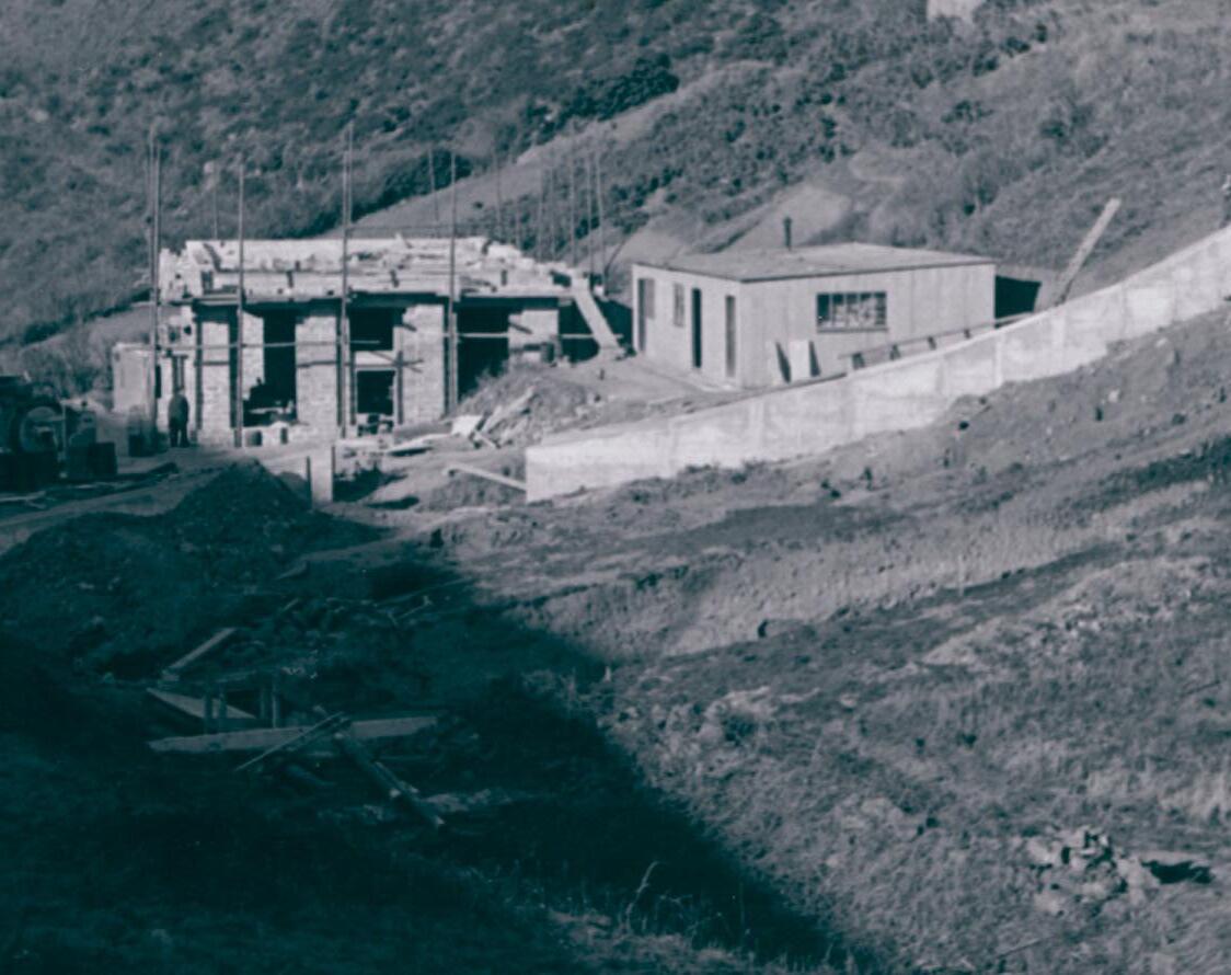 The peak summer demand in early 1960’s highlighted the limitations of the treatment capacity. The original slow sand filters at Millbrook could provide 2.25ML (1/2 million gallons) per day and Handois WTW 13.5ML (3 million gallons) per day. In 1962 two additional rapid gravity filters were constructed at Handois WTW and this gave a small increased in treatment capacity to 14.5ML (3.2 million gallons) per day. In 1963 works commenced on constructing a new additional water treatment works at Augrès, Trinity.