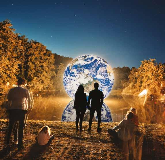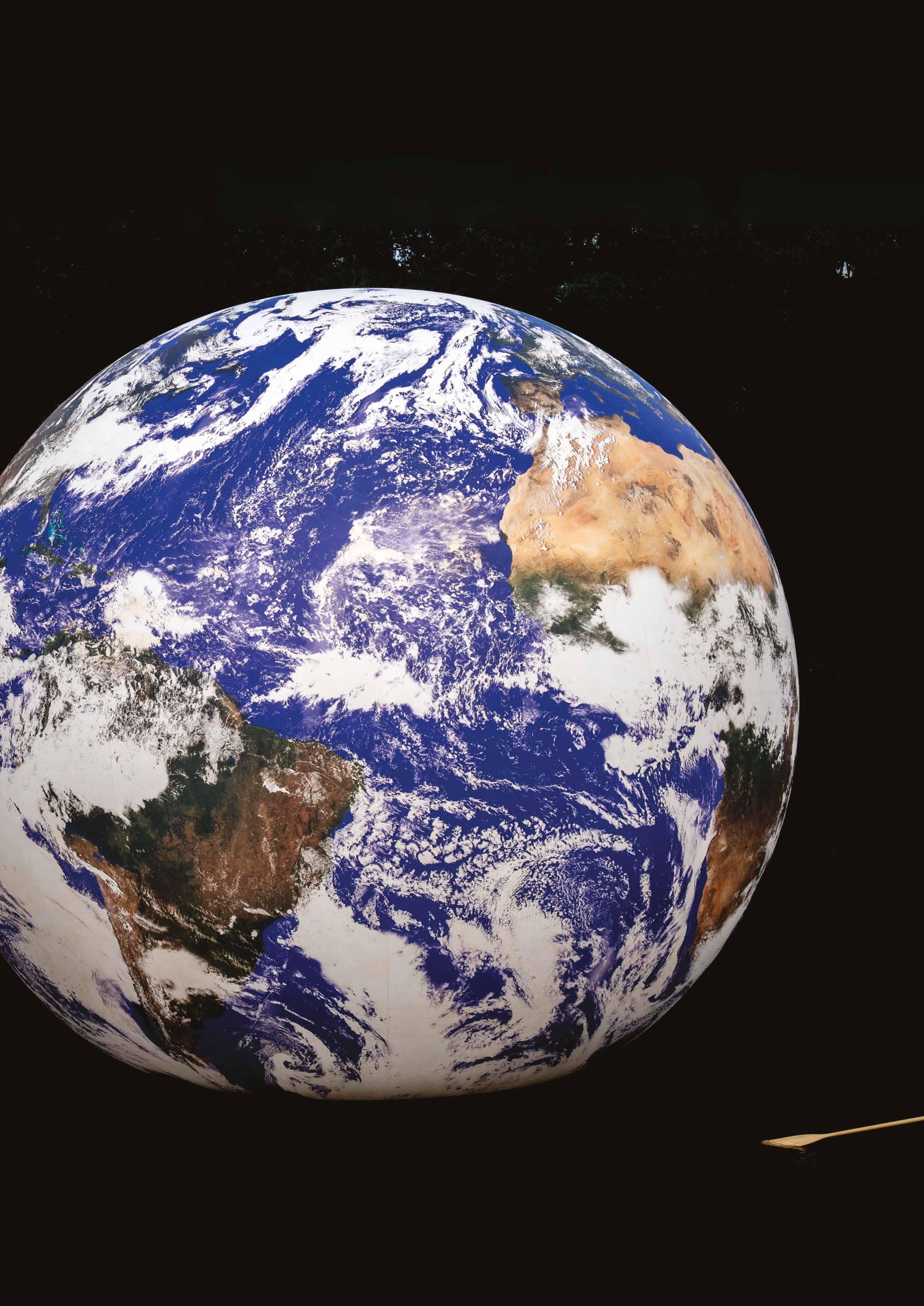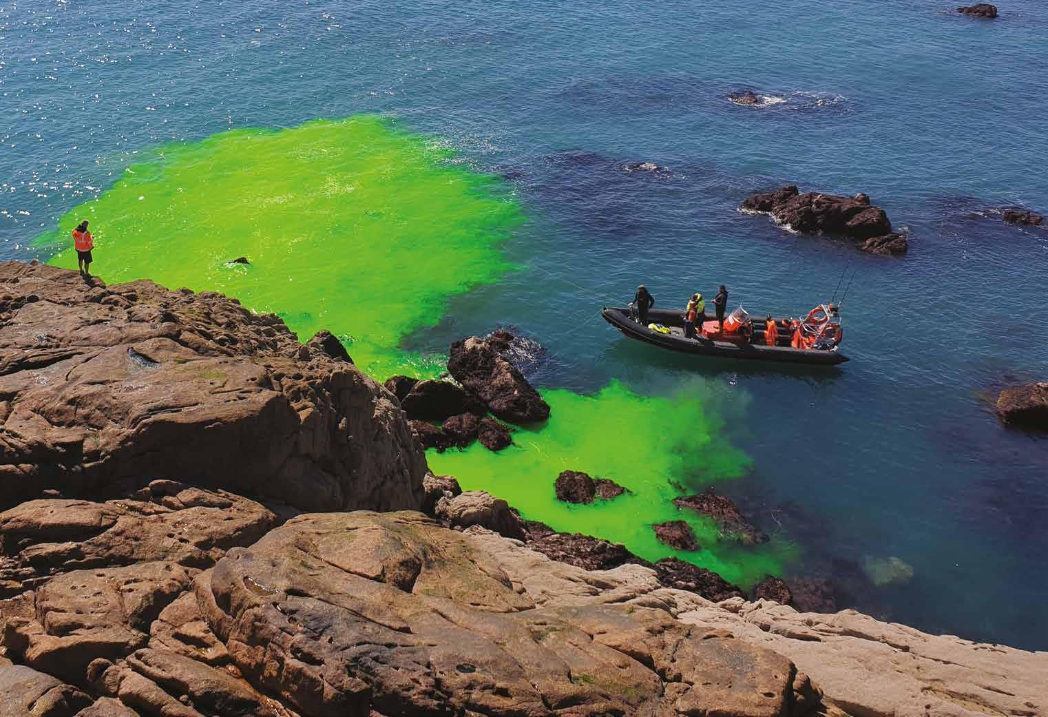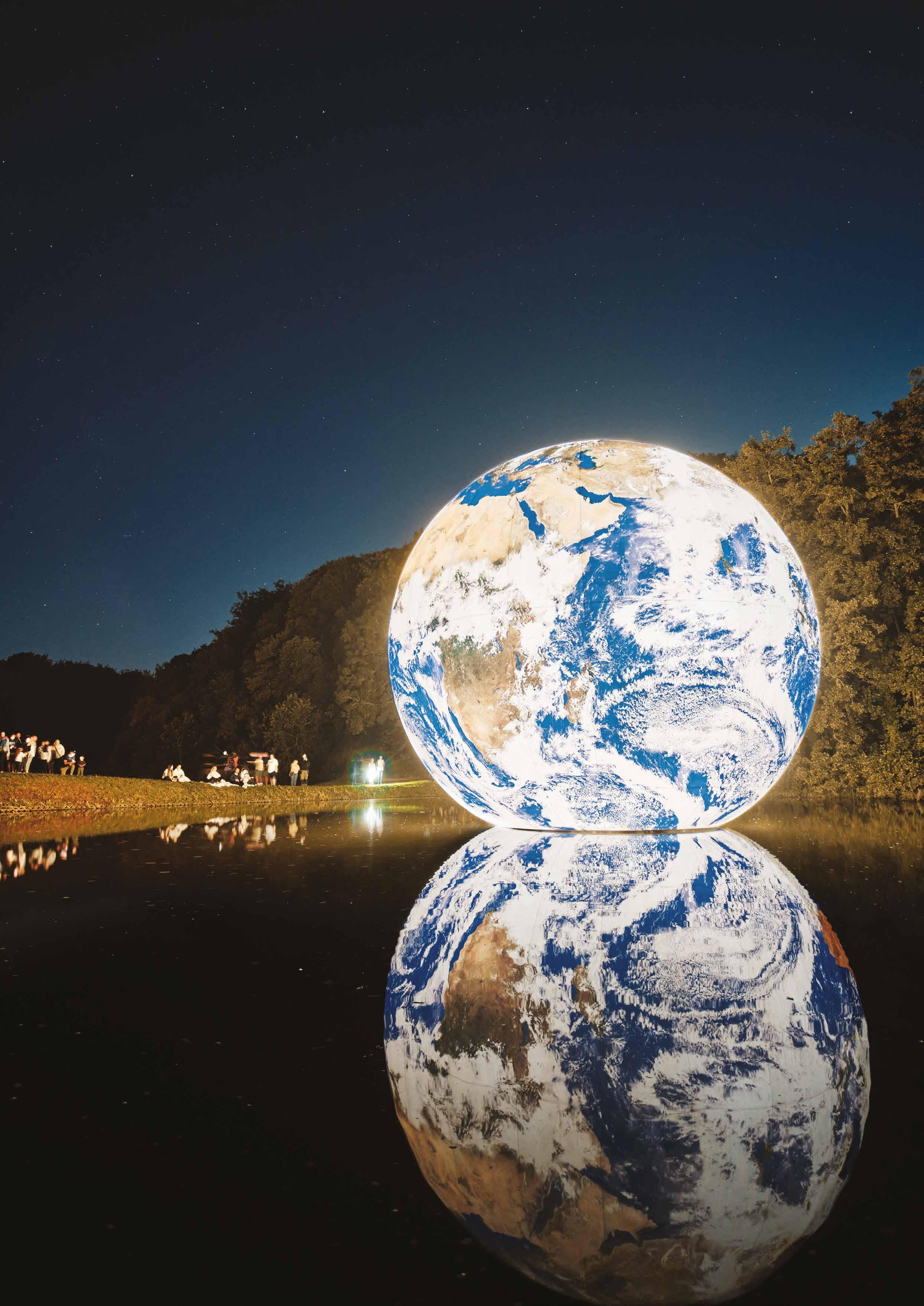 Inside cover image of Floating Earth with Jersey Water employees: Photographer Jon Guegan