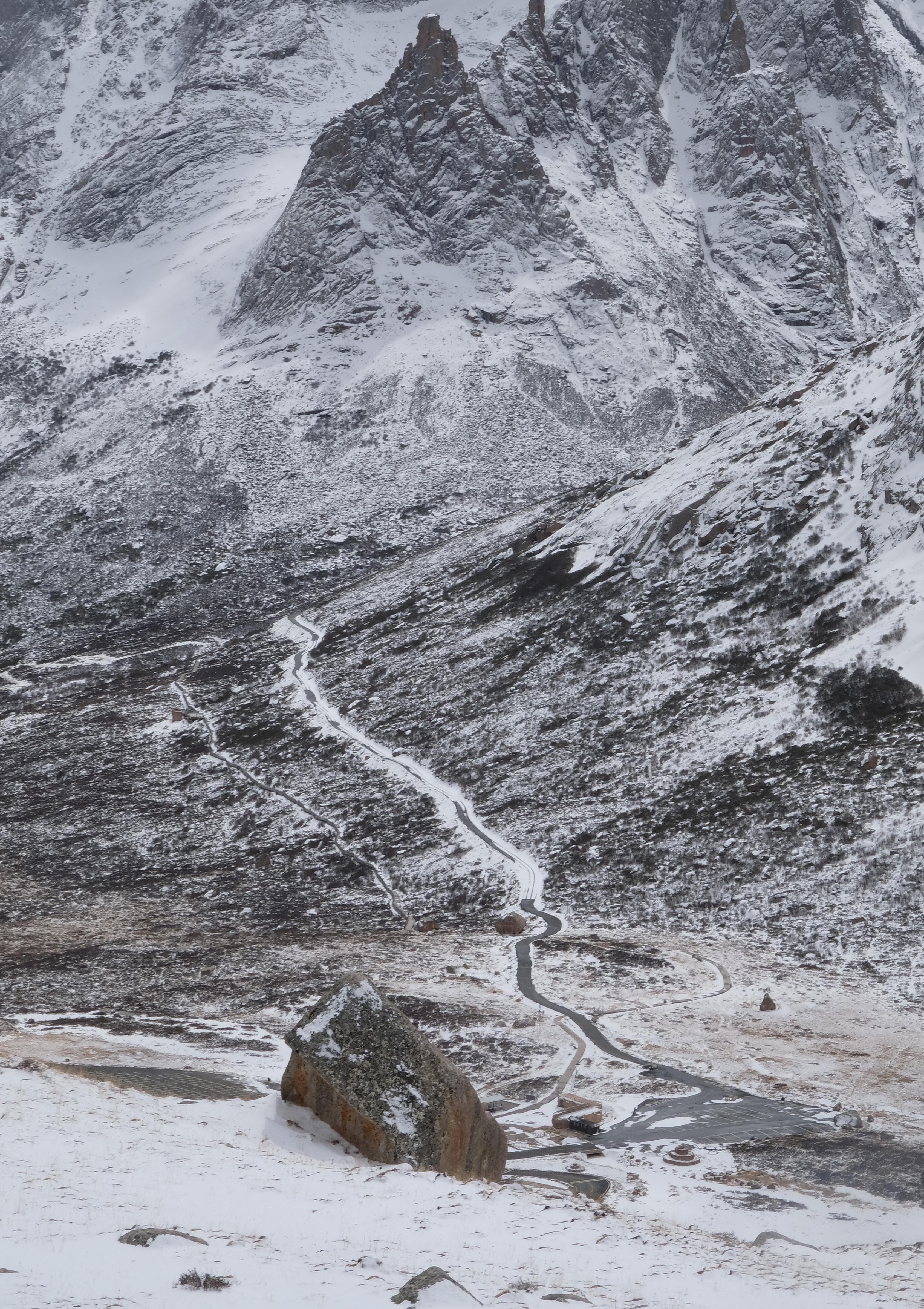 我拍摄的这些照片,很多都是在我与她们短暂而真诚的 交流中捕捉到的。它们并没有刻意去雕塑什么,而是呈 现了她们自然多维的一面:她在风雪中带着孩童放牧, 她与同伴转山然后在山顶上休憩......她们的表情总是从 容、坚韧而富有韵律,仿佛她们的生命与这片土地息息 相关。