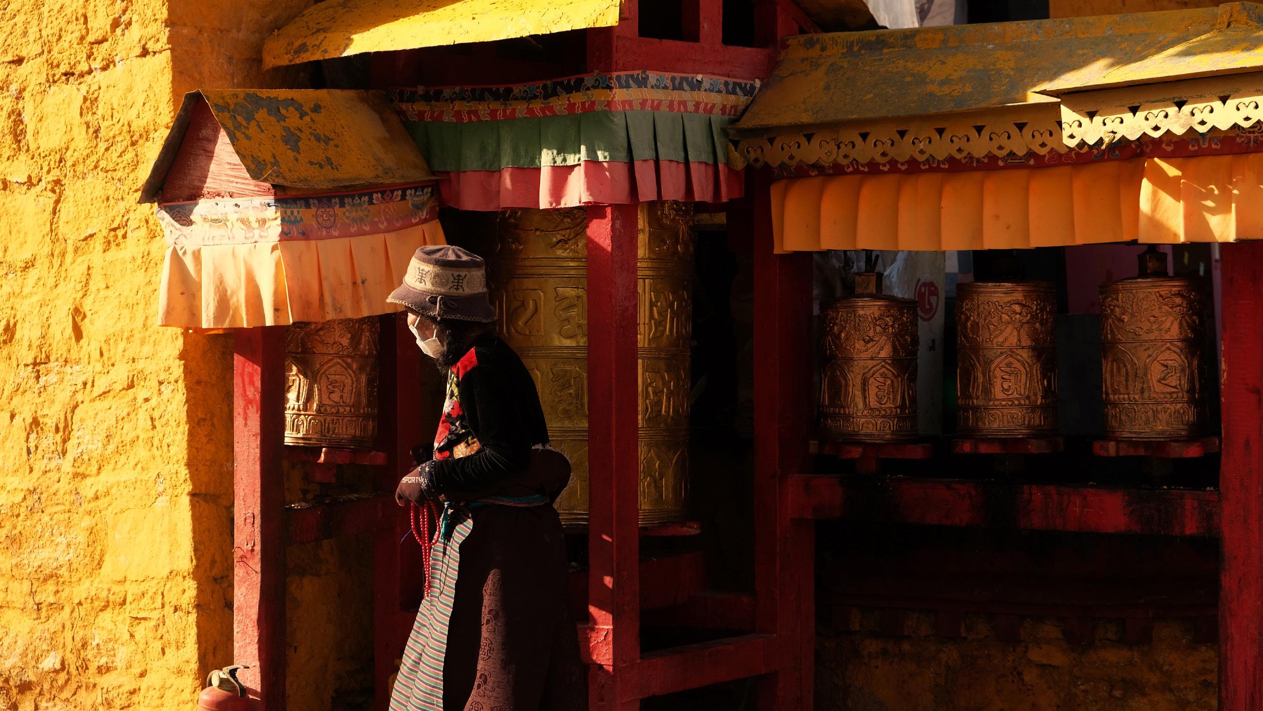 通过空间的关系来感知和理解藏族女性的生活与自然、 建筑的关系。家、寺庙、牛群,这些都是她们文化和生 活的构成部分。每一张照片,从寺庙的穹顶到大草原的 地平线,再到女性手中的转经筒,每一个细节都在不断 铺陈,逐步建立起一个关于藏族文化、藏族女性以及她 们与这片土地之间关系的影像故事。