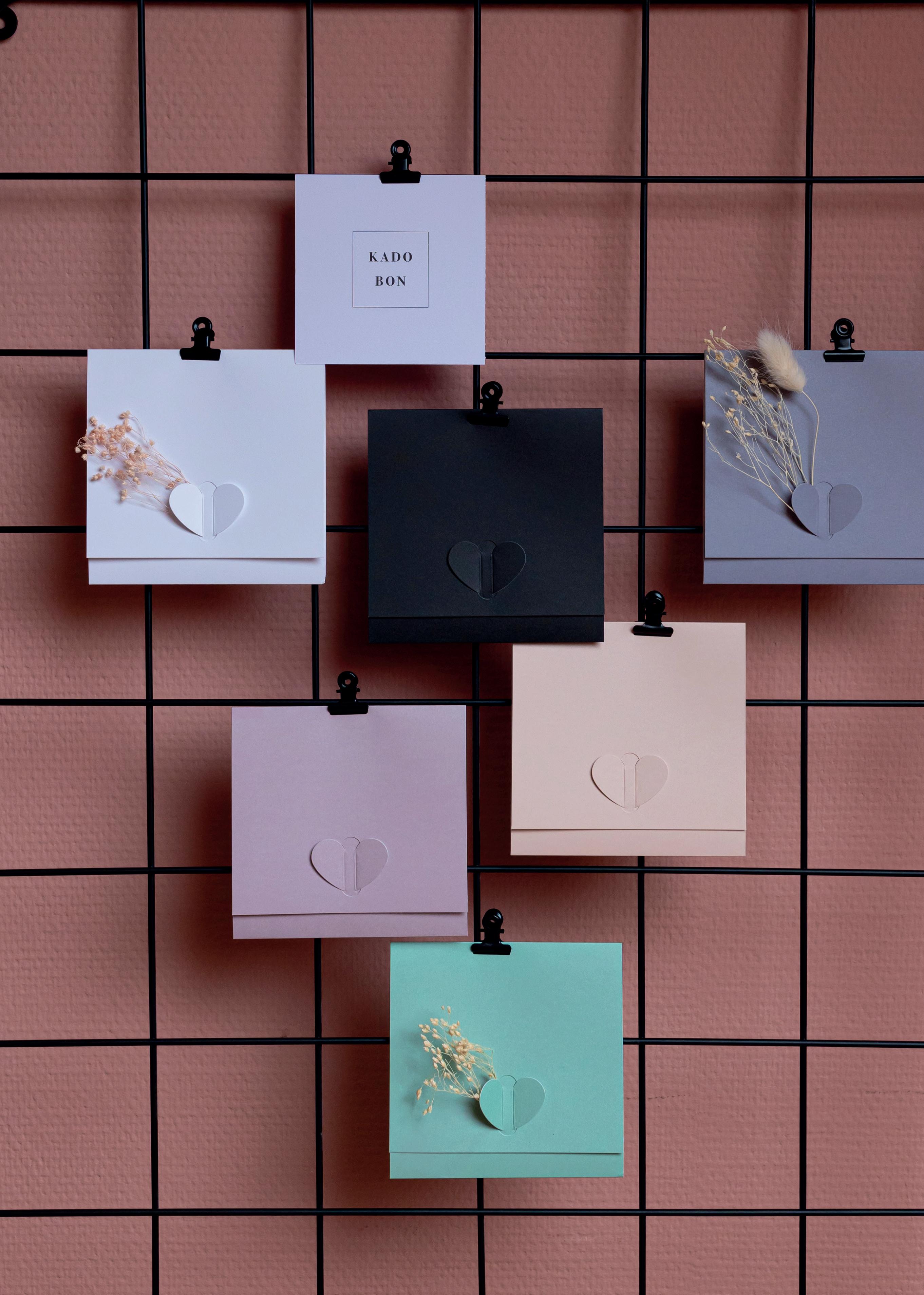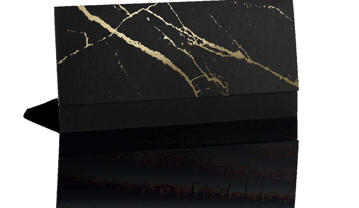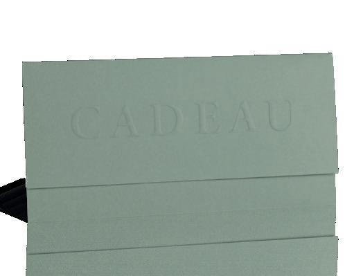Formaat: 21,5 x 10,5 cm Cadeaubonnen in warmdruk goud Omslagen + cadeaubonnen Modellen: 3 p. 41
