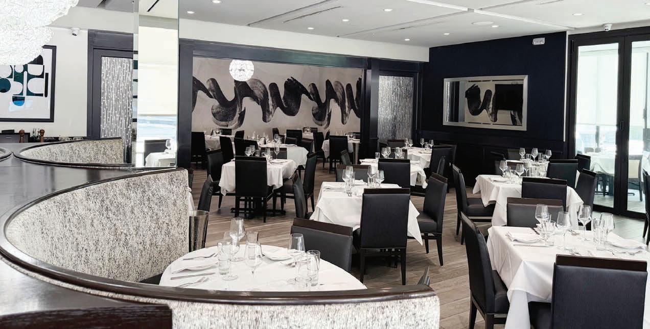 Chanson —45 N.E. 21st Ave. Contemporary American/ French. A little bit of Palm Beach, a little bit of Italy comes to Deerfield Beach in the form of this elegant, sophisticated restaurant in the oceanfront Royal Blues Hotel. Service is as stellar as the views from the cozy, modestly opulent dining room, notable for the 1,500-gallon aquarium embedded in the ceiling. Consistency can be an issue with the food, but when it is good it is very good. • Breakfast and lunch daily, dinner Tues.-Sat., brunch Sun. 954/857-2929. $$$