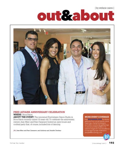 More event coverage Visit bocamag.com for photo galleries from social events, store openings, charity fundraisers and other community gatherings in and around Boca Raton. To submit images for Out and About, e-mail appropriate material to people@bocamag.com.