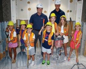 The crew renovating Mizner Country Club’s Main Clubhouse got a little extra help from the community’s junior construction team. The kids enjoyed busting walls while learning from Proctor Construction Group the steps that go into executing such an ambitious renovation. Pictured: Mizner Country Club junior construction team with Brian Locatelli and DJ Heard from Proctor Construction Group.