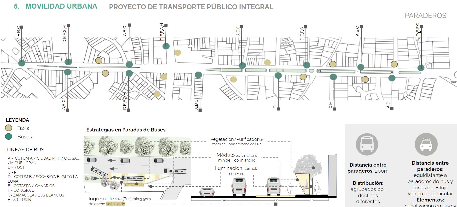 La propuesta se baso en lograr eficiencia en transporte para la avenida ejercito, y logrando configurar subcentralidades a lo largo de ella, se distribuye los paraderos de buses y taxis por horarios y distancias Se aumenta el espacio publico con un rediseño de alamedas y zonas en desuso