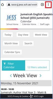 Open the following link in your web browser on your mobile device to access the JESS School Calendars: