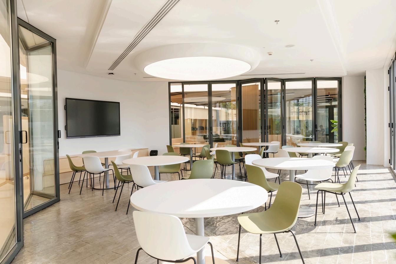 As such, the Sixth Form Centre includes a wide array of features including: extensive soft furnishings and moveable laptop tables (many with included power/USB outlets) a fully-fitted kitchen area (complete with stove, oven, microwaves, kettles, toasters, etc.) a large study hall with sound dampening furnishings and flooring/ceiling. an internal courtyard that can be used for a range of activities a 5 meter TV screen for presentations/viewing the Sixth Form Office providing students access to key staff and university counsellors four private meeting rooms catering for between 1 to 8 students