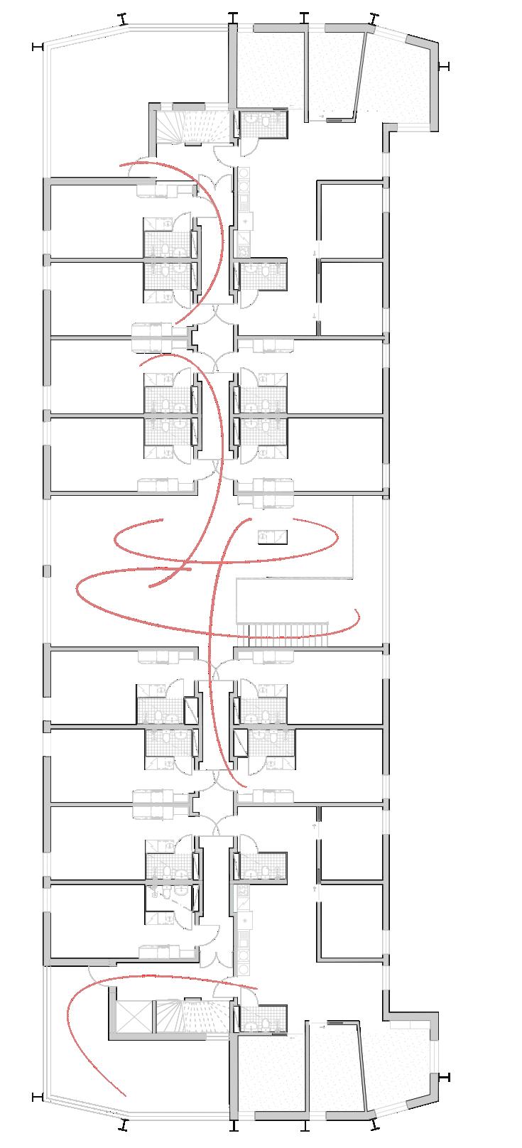 Architectural Design -kurssien työssäni tutkin, miten pienillä interventioilla voidaan saada aikaan suuria vaikutuksia elävöittämällä opiskelija-asumista täydennysrakentamisen keinoin ja muuntamalla parkkipaikka tamperelaisten yhteisölliseksi piha-alueeksi. Uudistus parantaa yhteyksiä tilojen, yhteisöjen ja ympäristön välillä lisäten yhteisiä tiloja, kuten monikäyttöinen paviljonki, parvekkeet, yhteiskeittiö, ja sauna. Myös muut ratkaisut, kuten päätyjen yksiöiden muuttaminen yhteisasunnoiksi, tukevat asumisen monimuotoisuutta ja viihtyisyyttä.