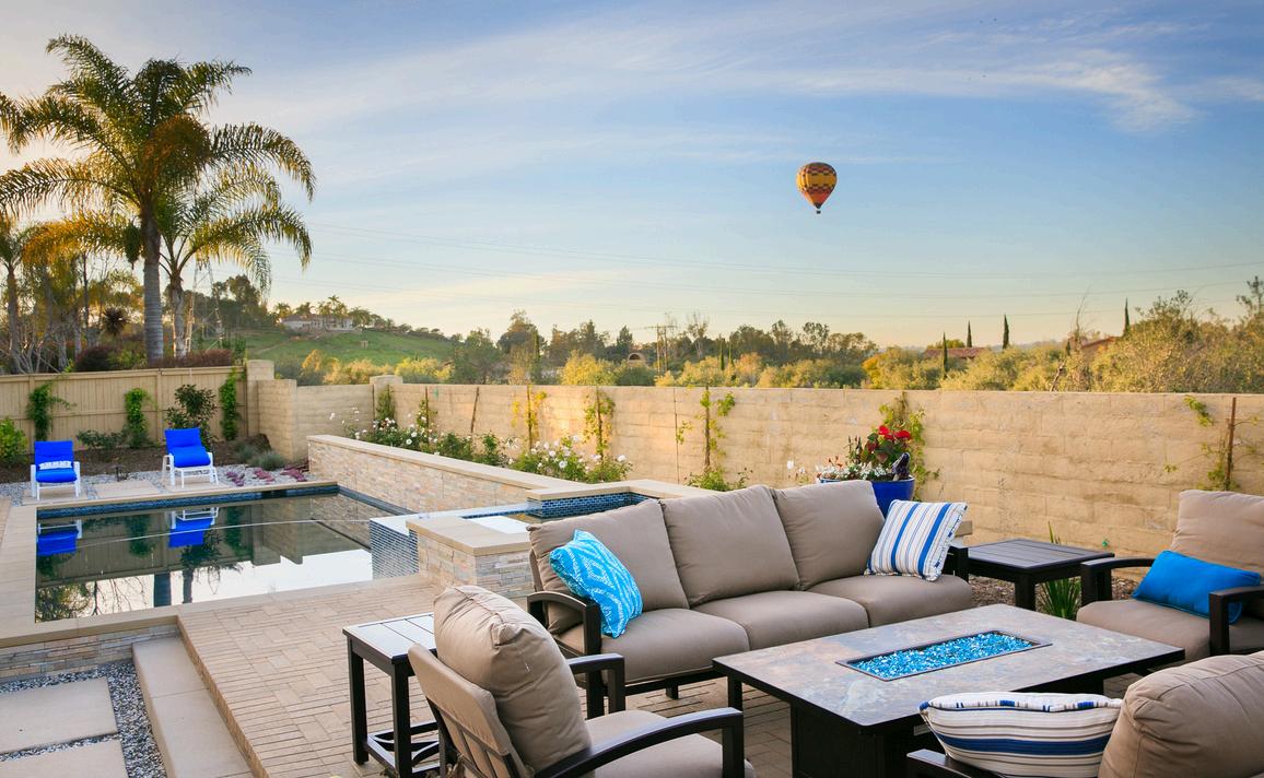 Perfectly positioned to take in sweeping views of the San Pasqual Valley, this infinity edge pool creates a breathtaking focal point for both relaxation and entertaining. By maximizing the space near the home, we crafted a welcoming layout that blends comfort, functionality, and luxury
