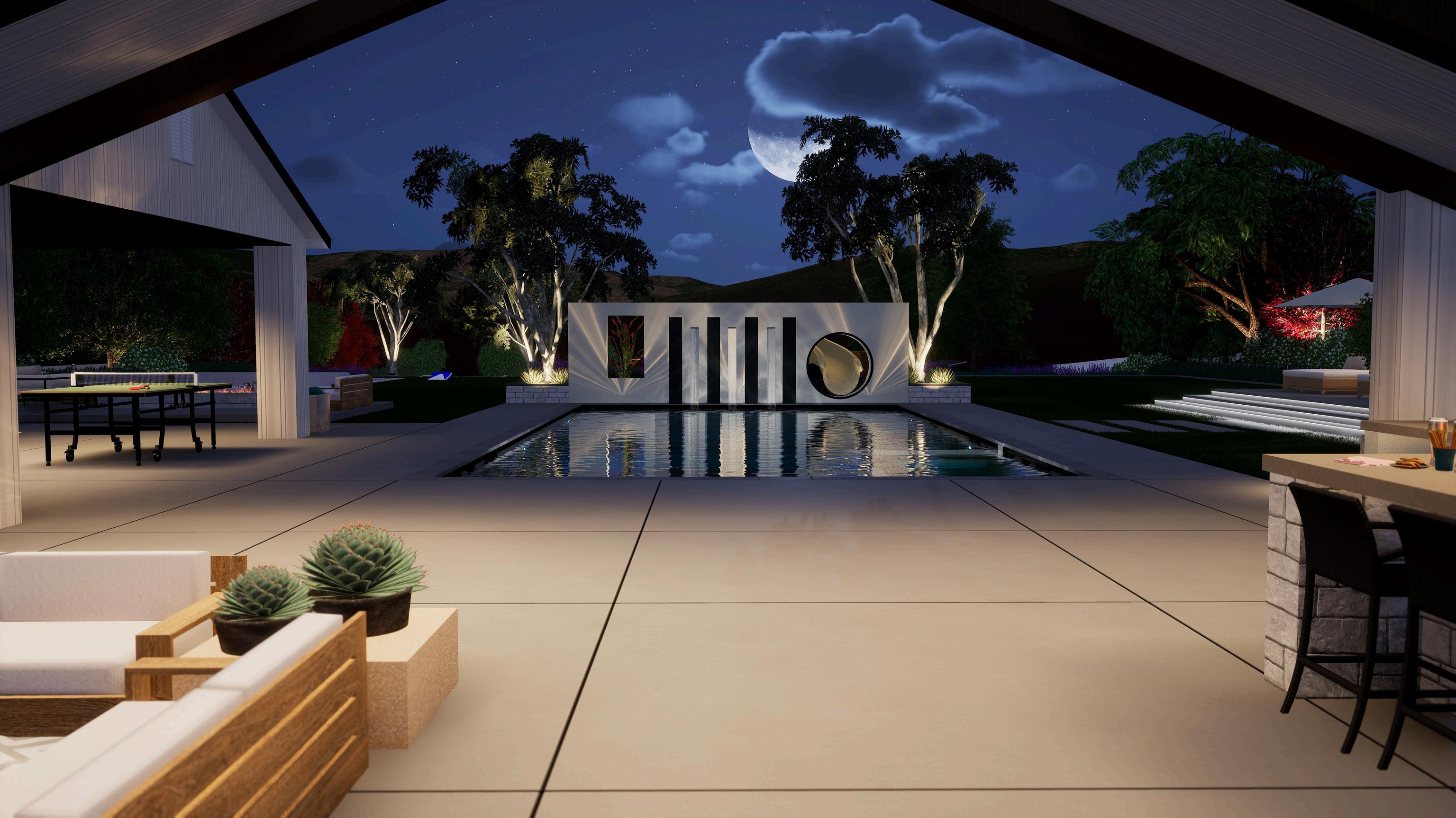 You’ll walk through your new backyard virtually, seeing how each element works together, from the placement of the pool, the movement of sunlight, the flow from your patio to the fire pit, the scale of trees, to the glow of lighting at night. Every detail, from material textures to planting arrangements, is represented with precision so you can visualize exactly how your space will look and feel. We use this stage to validate, refine, and inspire. The 3D model helps you make confident decisions about materials, furniture layouts, finishes, and more before construction begins. You’ll see how the subtle contrast of stone against wood, the softness of a shade tree, or the glow of underwater lighting all contribute to the mood of your space And because we take the time to model everything with care, this becomes a powerful tool for both creative alignment and logistical planning. You’re not just reviewing a drawing; you ’ re stepping into your dream environment.