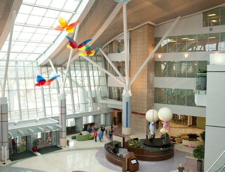 You may park in garage P2 on the west side of Oklahoma Children’s Hospital and enter through the atrium. The parking entrance is on the east side of Children’s Avenue, between NE 13th Street and Stanton L. Young Boulevard. You may also valet park for free or self-park in the garage. Parking for parents of patients can be validated in the outpatient surgery registration area. All other parking for visitors is $1 per half hour, up to $5 per day. After parking, enter through the main atrium entrance. This entrance is open 24 hours a day and is on the second floor of Oklahoma Children’s Hospital. You must check in with the security officer in the atrium from 9 p.m. – 6 a.m. After you enter the atrium, go to your left toward the pharmacy, behind the large statue of the two children skipping rope. To the left of the gift shop are two double doors that will take you into the hospital. Take elevator L just behind the double doors up to the third floor. Exit the elevators to your left, and follow the train mural on the wall to outpatient registration.