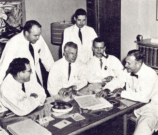 From left to right, standing, Drs William R Richardson and G Rainey Williams; seated, Drs Gilbert S Campbell, Merlin K DuVal Jr , Rene B Menguy, and John A Schilling