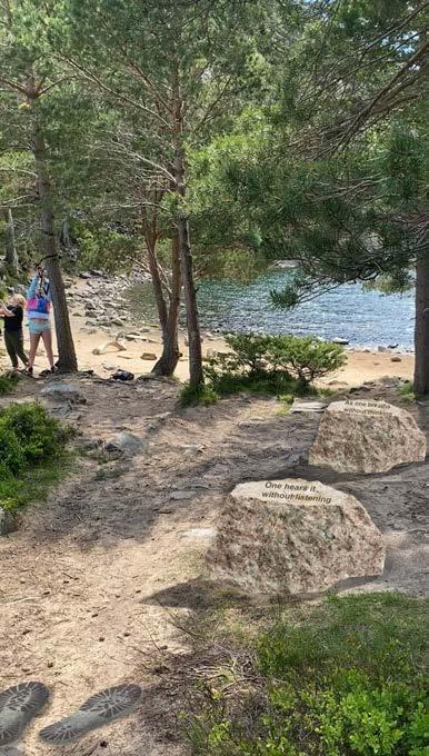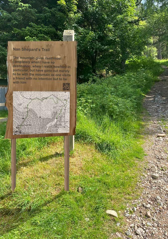 The spirit of Nan Shepard is guiding the hiker to hidden treasures, creating a connection between them, nature and Nan Shepard. Interpretation throughout the trail encourage hikers to appreciate the journey and through using all sense, creating an immediate bodily experience.