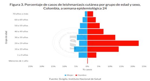 Leishmaniasis cutánea: Hasta la semana epidemiológica 24 del año 2023 en Colombia se han notificado 1,860 casos por leishmaniasis cutánea, La incidencia acumulada nacional es de 18.88 casos por 100.000 habitantes en riesgo, según la población a riesgo suministrada por el Ministerio de Salud y Protección social.