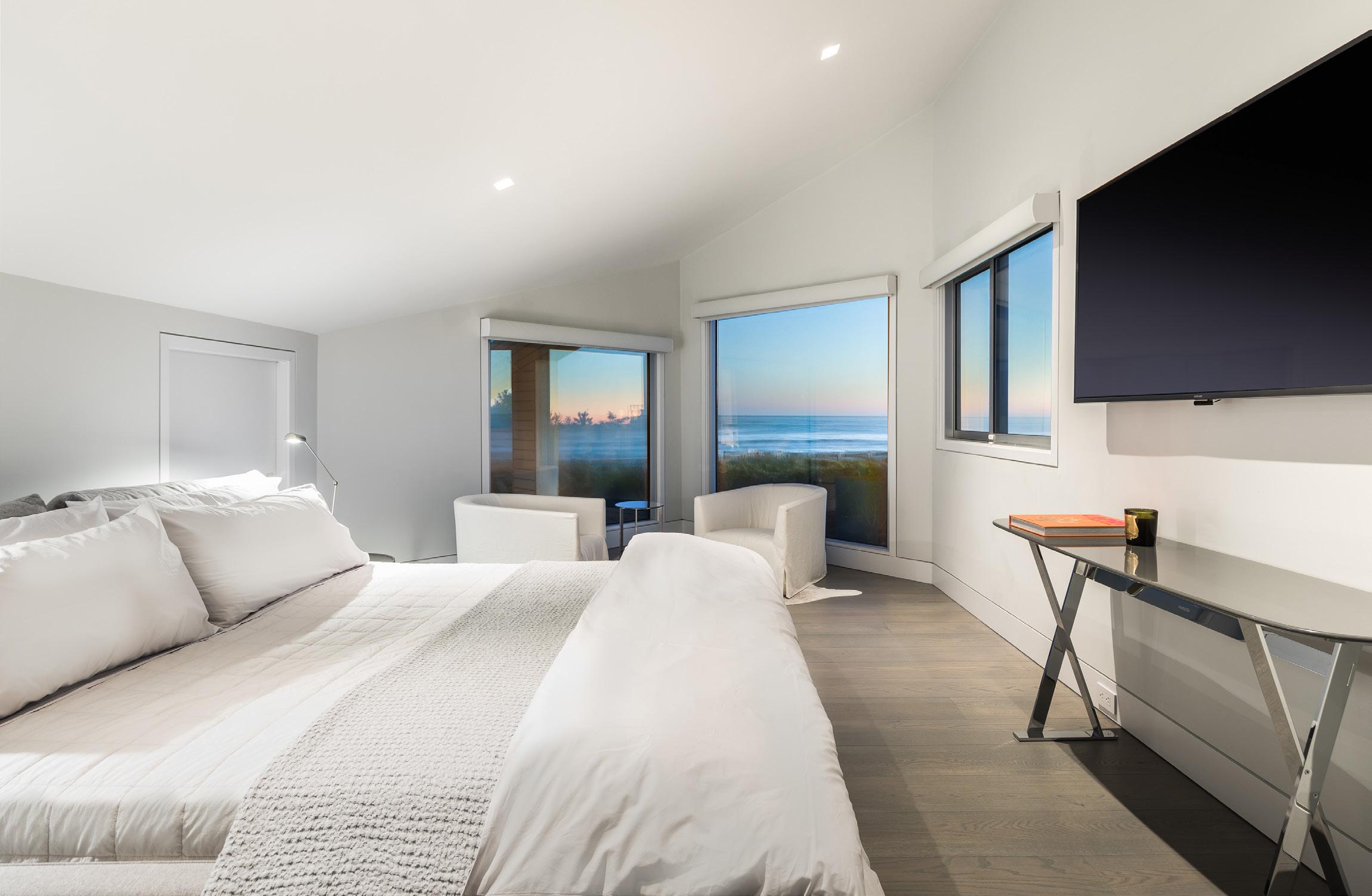 This stunning, light-filled, modern beach house sits well forward on a 2.6 acre oceanfront lot. With an address on the most desirable streets in Bridgehampton, this home offers a degree of privacy, luxury, and stunning views normally only dreamed about. Watch the waves roll in while floating in the heated gunite pool; enjoy dinner in the outdoor eating area just off the open, eat-in kitchen as the sun sets; and choose between Mecox Bay or Dune Beach for your morning walk. The forward placement of the main house on 202 ft of ocean frontage is just one of the things that makes this home so special. The first and second floor look out onto the bay and the ocean, water views in every direction. The property includes a media room, pool cabana, kitchenette, bonus loft and over 1,000 sq ft of outdoor entertainment areas with luxury amenities and finishes throughout. But it’s the double sided views of bay and ocean that will make you never want to leave this oasis near Scott Cameron and Dune Beach. “Stunning” doesn’t begin to describe it.