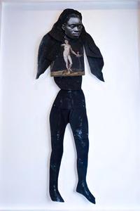 ‘Untitled’, 2018 collage with paper pins mounted on aluminium Having worked as a social worker, Orupabo addresses the struggles of race and the issues of being a woman in her jointed collages.