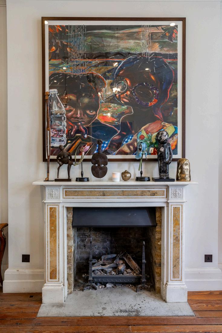‘Sail Me Down Deep River’, 2020 collage and acrylic on canvas As Emefiele mourns the loss of her sister, she paints this haunting portrait of their continued journey together full of personal symbolism and tragedy
