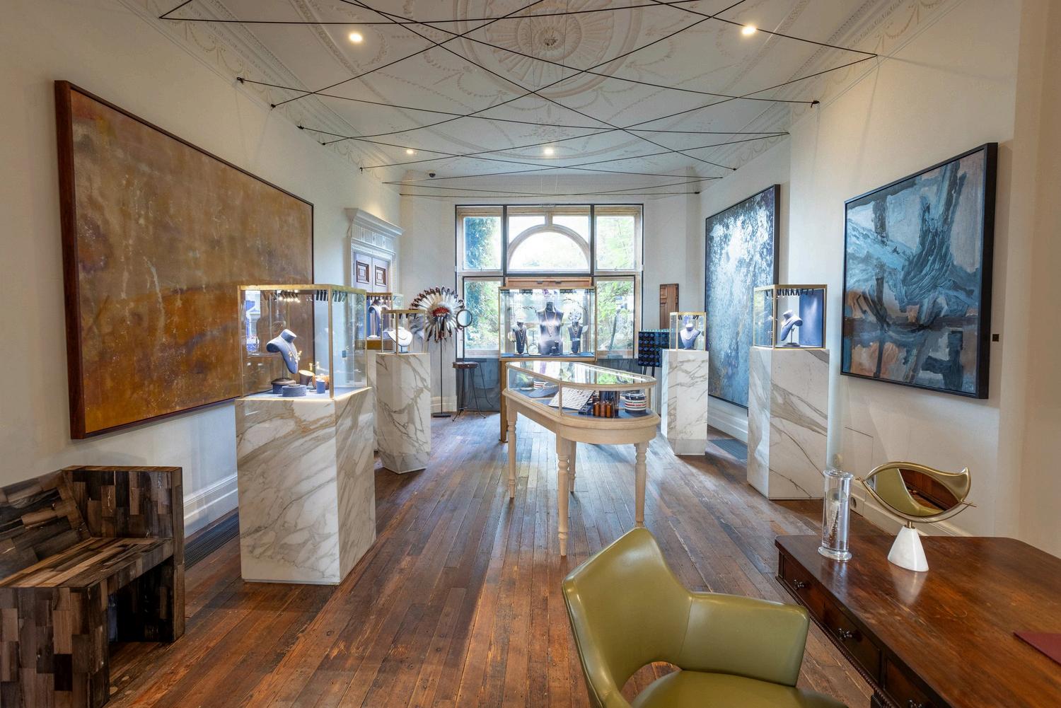 As with her jewellery collections, Jessica has the remarkable ability to create something unique by mixing the old and new. The interior of the space sees walls and floors covered with contemporary art, coupled with objets, and antiques which span centuries