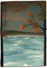 ‘Untitled (Green sea green land dark sky)’ oil on pressed fibre with Masonite backing