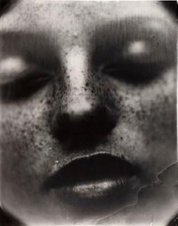 ‘Virginia #42’, 2004 gelatin silver enlargement print with varnish Mann is best known for her intimate images of family life and here her daughter’s face is enlarged and takes on a sculptural form with luminous light on her freckles.