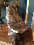 carved in a light wood with decorative burnt markings and unusual carved ‘foot’ signature at the base