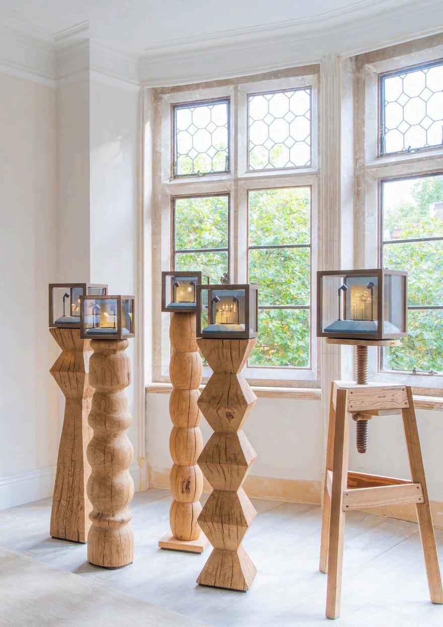 ‘Hex Candelabra’, 2013 brass tiles over wood, with slumped, fused glass shades Commissioned for the house’s opening this Joshua-tree-inspired light was the beginning of a relationship with Jessica that led to their jewellery collaboration