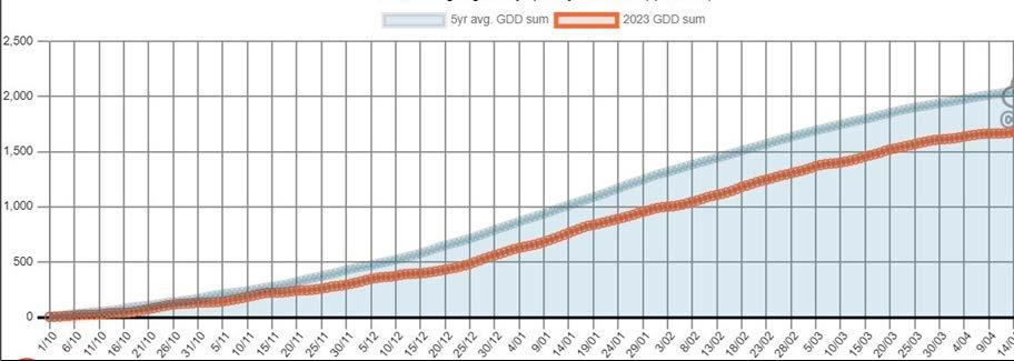 Figure 2 - CLOWDCumulative Growing Degree Days for CY23 vs 5 yr. average