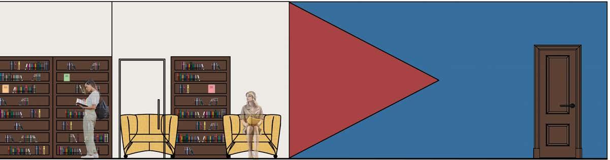 My research began with an exploration of the women’s rights movement. The purpose of this space is to tell stories of oppression, censorship, and marginalization. The envisioned space is an extension of Loudmouth Books, a Black, queer, womanowned Indianapolis-based independent bookstore dedicated to highlighting banned books and uplifting the work of marginalized authors. The intent is to foster a profound sense of belonging for marginalized and oppressed individuals. This is manifested by making elements and spaces that were once exclusionary more inclusive and playing with curvature to create a sense of interaction, gathering and dialogue.