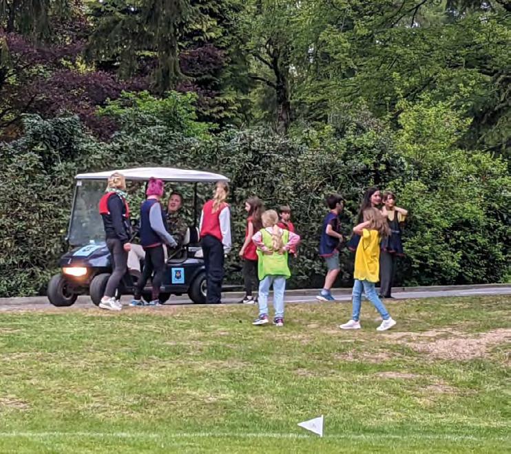 The Form 9 and 10 GCSE Drama pupils also performed some magnificent set pieces from Willy Russell’s ‘Blood Brothers’ and Arthur Miller’s ‘The Crucible’ during their Drama showcase in May. In this delightfully warm weather we have also been out on ‘wellbeing walks’ and I particularly enjoyed going (some of the way!) with Form 9 or perhaps it was the ice lollies we all enjoyed that sticks out most in my mind? The walks, though, do allow the pupils to have time to relax and stroll in the open air and gives mind-space away from the very busy academic classroom. Another example of enjoying this wonderful weather as a community has been during our coronation celebrations before half term where the pupils had a fantastic time with a variety of inflatables mixed with other games and activities – great fun!