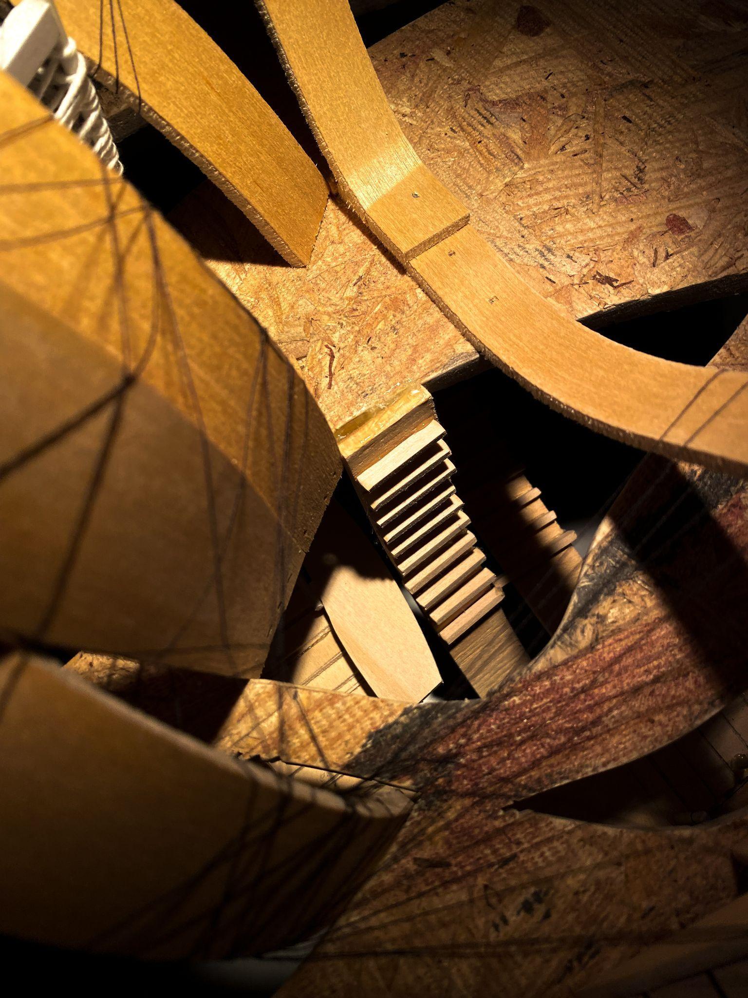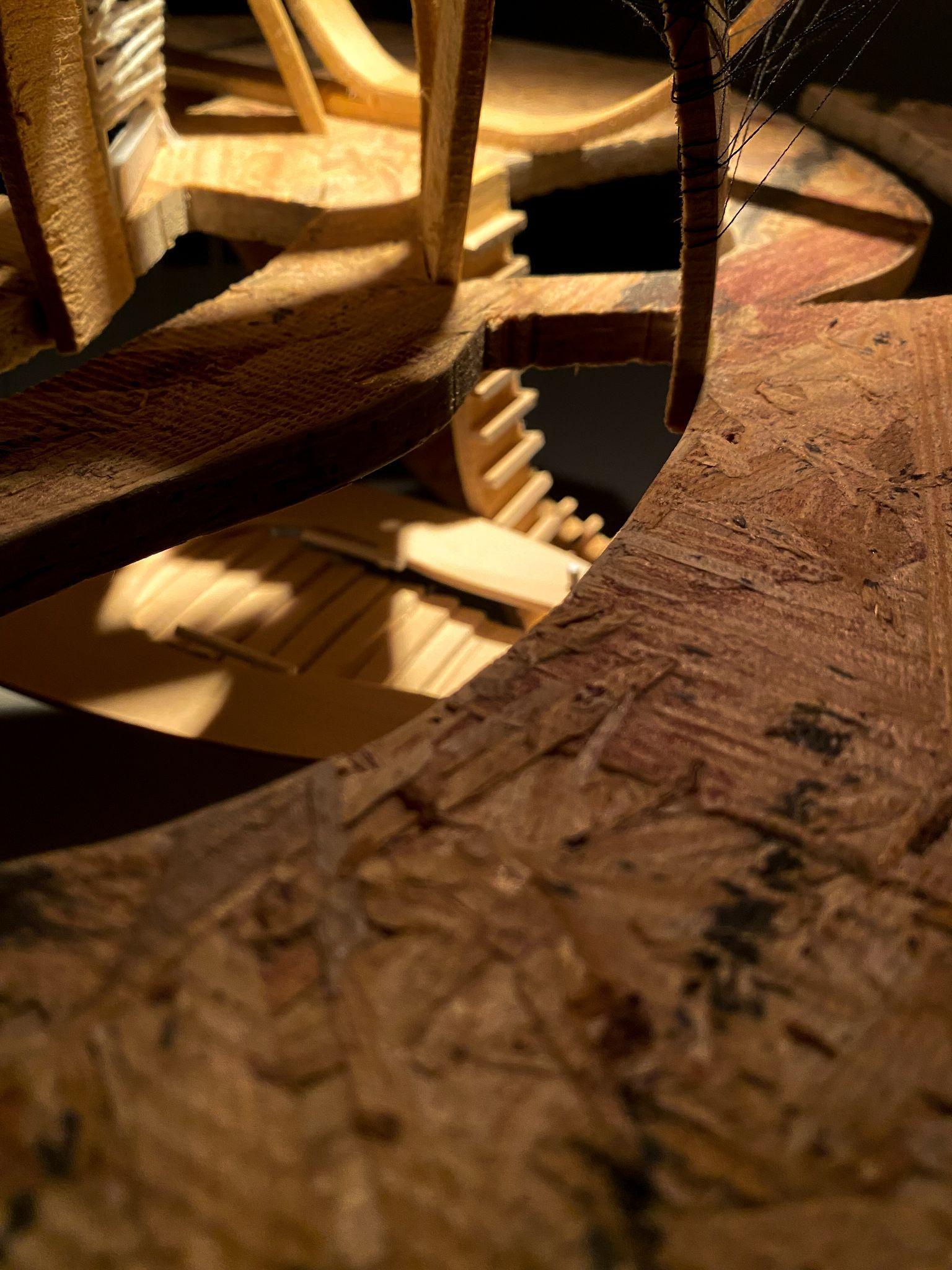 Emphasizingthecurvesofthebas relief,thecurvedandintertwined woodwascreatedforthe model.Thecurvesmadeasite thatpeoplecouldexplore.