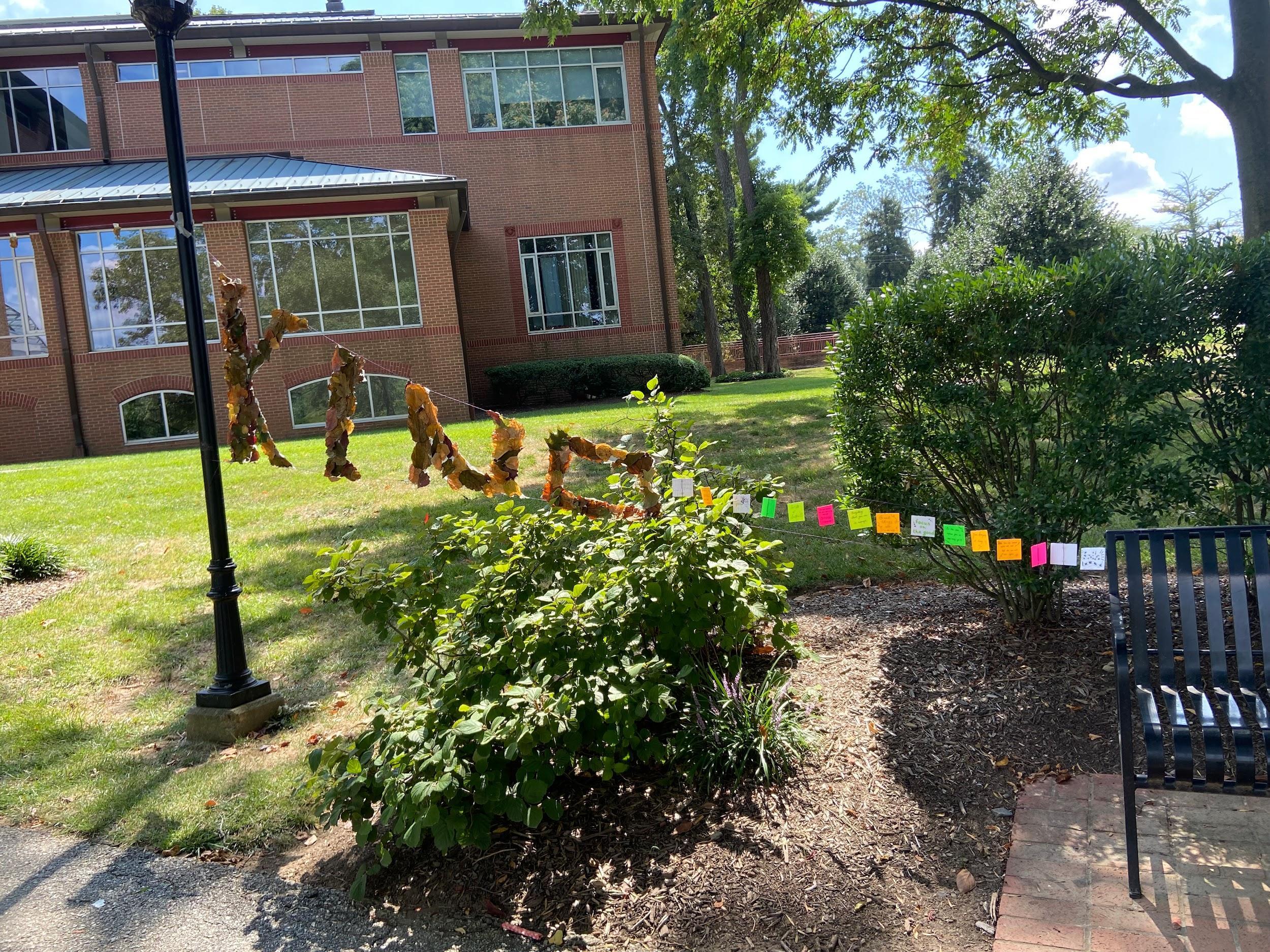 Thinkingofawayofhowto connectpeoplewiththeidea ofsharingkindnessand positivitywasthetheme chosen.Fromthis,using postcardswithpositive messagesandnatural elementalslikeleavesto formthemainfocalpointof thewordkindhelpedconvey thismessagetoeveryoneon campus.