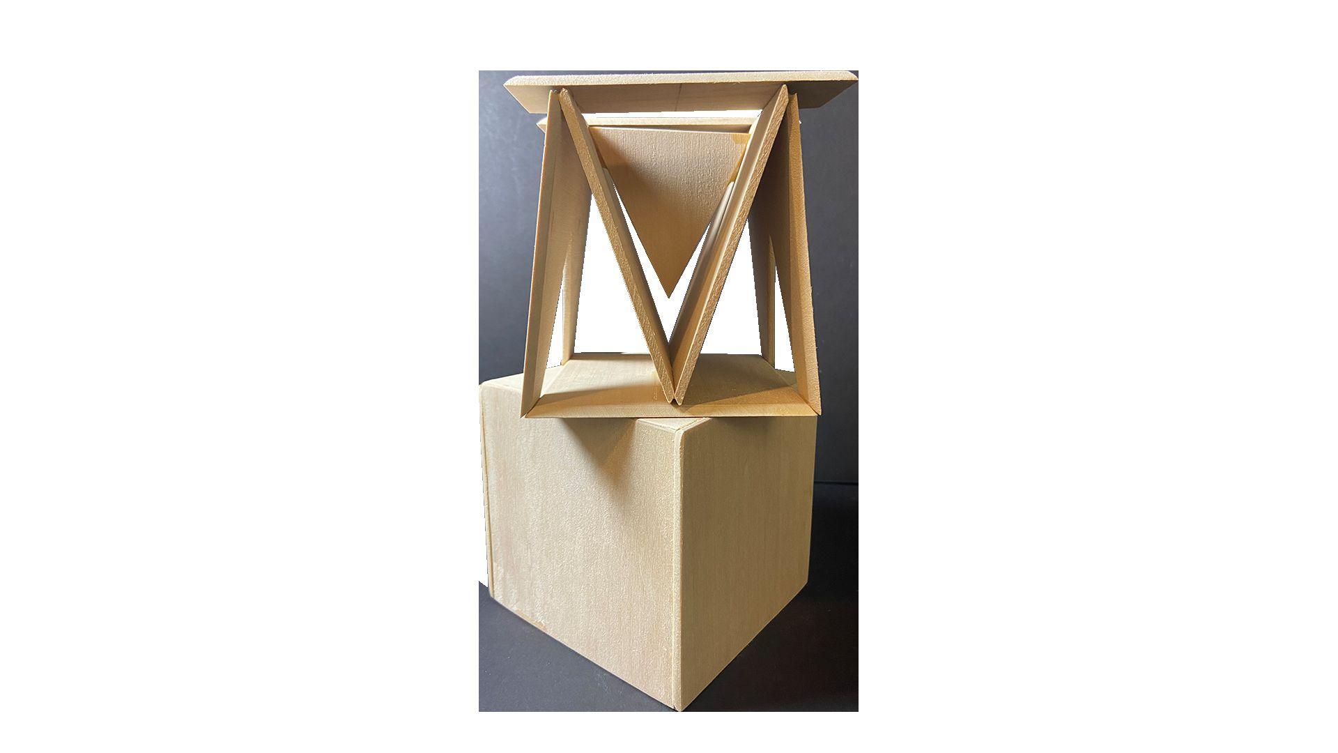 Mostweeksrequiredthe explorationofworkingwithrequired materialstocreatea4x4x4cube, cylinder,andeventuallyexploratory object.Thebeginningrequirements wereplatonicobjects,andmoved intoformsallowingexplorationof freedomwiththerequired materials.Eachweeknewskills werelearnedthroughexplorationof materialsandnewtools.Crafting skillswerelearnedandimproved uponwiththeadditionofdrawing skillsandphotographicskillsusing lightingandcomposition.