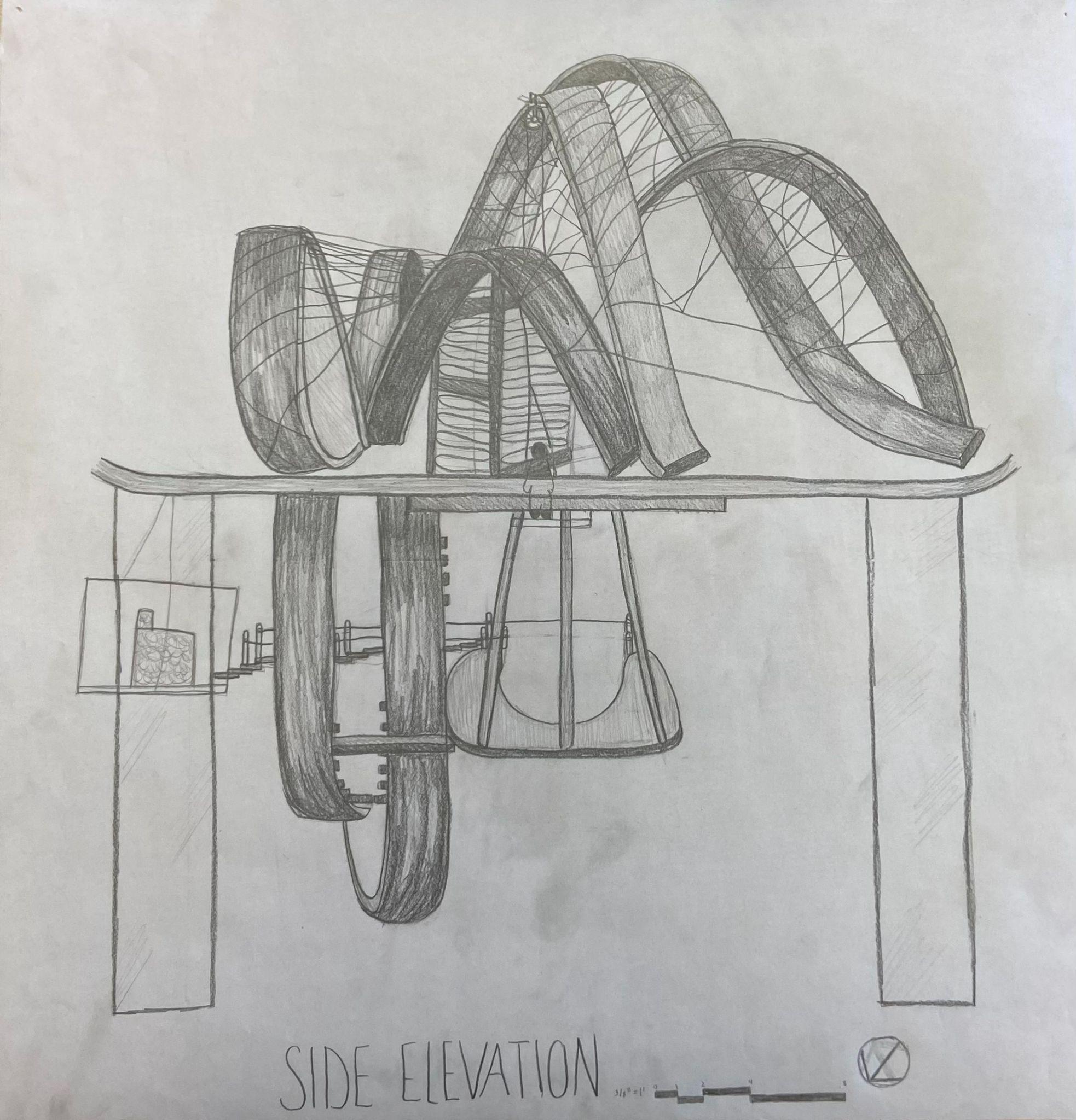 Addingontothewoodenmodelpreviouslyconstructed,a chapterfrom“InvisibleCities”,whichshowcasedfantastical cities,wasappliedtocreateasiteplan.Inthecity Valdrada,isalocationwheretwoloverscoexistwithno loveandtheplaceisnotequalnorsymmetrical.Theupper partofthemodelshowcasesthecurvesandhowthey intertwineandinteractwithstringthatbringsinthe connectivityandshadowswhenlighthitsthem.Thecurves bringshadetodifferentareasdependentonthelight position.Additionally,theswingsonthetopandelevator aretobeexploredandemphasizetheconceptofmotion tothebottomofthemodel.Thebottomofthemodelisnot symmetricaltothetopandhasmoreofastraightforward pathwithadditionalflowofbringingthecurvesdownfrom thetopthatcitizenscouldexploreandclimb.
