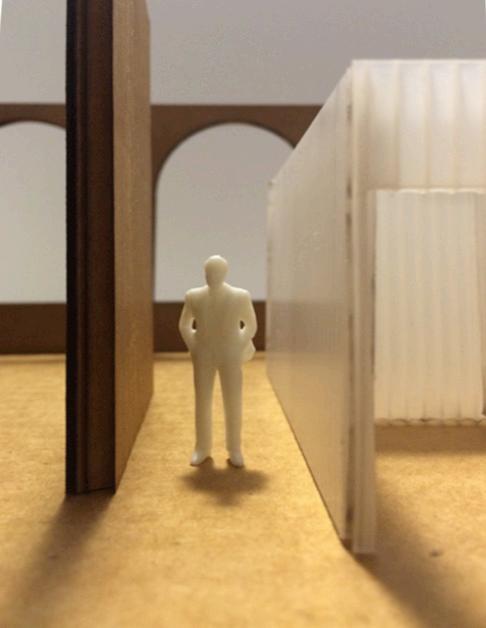 The shape of the space comes out from a rectangle, which is then divided by several more rectangles, to form different spaces and uses. A wall is also placed which serves to divide the space without closing it completely, playing with the open and closed space.