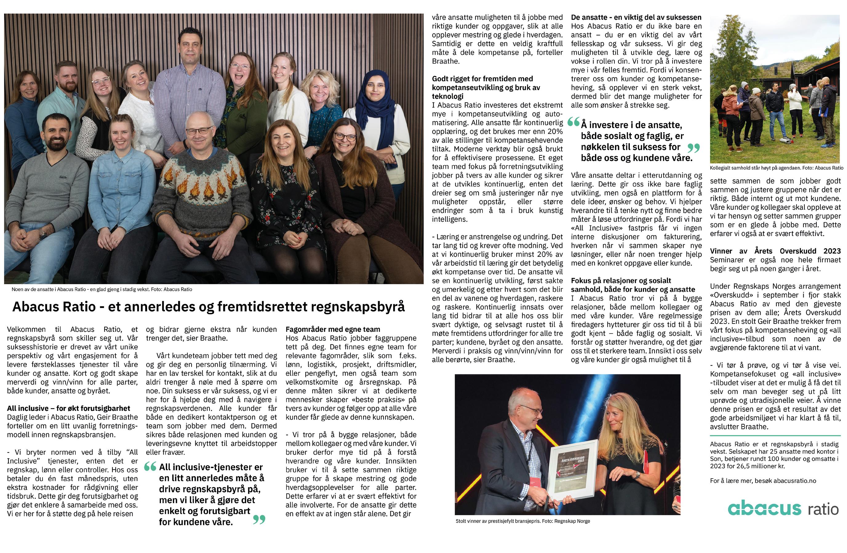 − De fleste av våre 12 medarbeidere er statsautoriserte revisorer og/eller statsautoriserte regnskapsførere, og vi føler virkelig at vi får brukt faget vårt i hverdagen.
