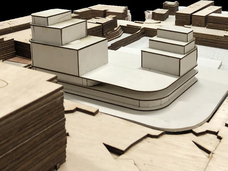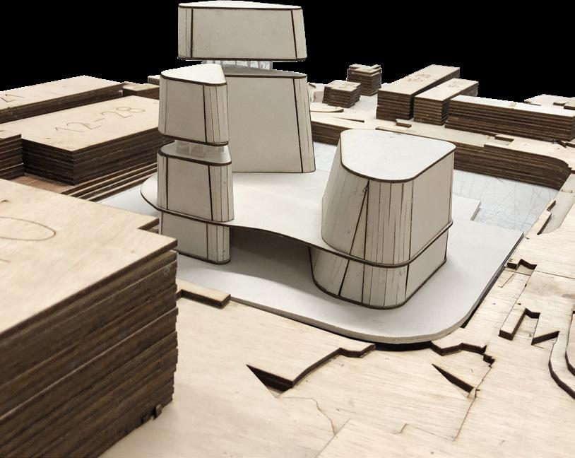 the height of the three massings are modified to respond to the buildings surrounding them, and creates better view