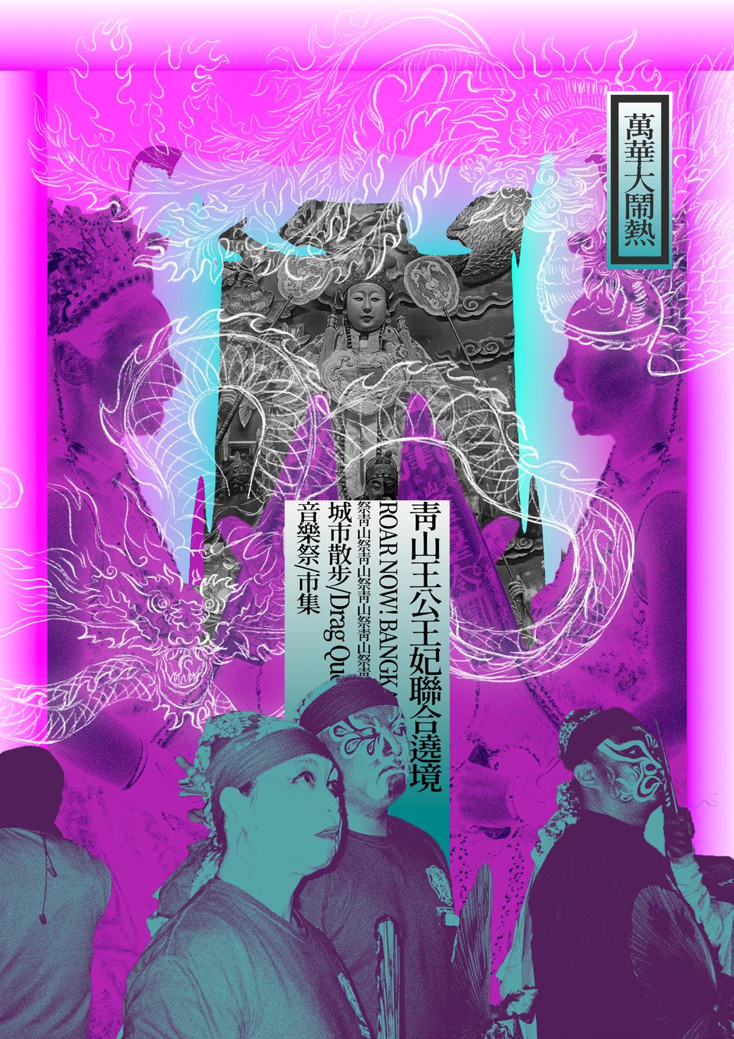 我希望能以多元與包容性為主要訴求設計 此次主視覺,描繪對性別與族群更加友善 的圖像。因此,我希望能邀請青山王妃一 同參與遶境,透過「青山王公」、「陰陽 司」、「青山王妃」的遶境主神組成,將 打造一陰陽調和的雙修意象,帶來性別流 動、與象徵陰性的力量。