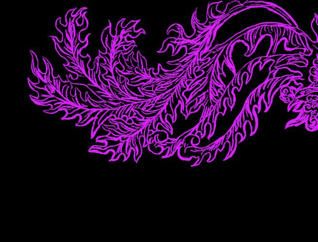 龍鳳雕刻繪製 - 上方搭配的白色線稿參照 青山宮廟宇中青山王公與王妃神像身後的 雕刻繪製而成,希望呈現以龍與鳳陰陽調 和的意象。