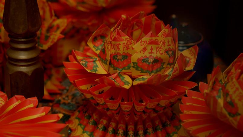 在這部家庭人倫恐怖片的短片拍攝計畫中,我擔任美 術設計、場景設計、道具設計、服裝設計、場地管理。 在打造一個臺灣典型的中產階級家庭空間之餘,為切 合本片主題,使用大量紙蓮花、符紙等宗教、葬儀相 關元素,嘗試營造臺式的懸疑詭譎氛圍。