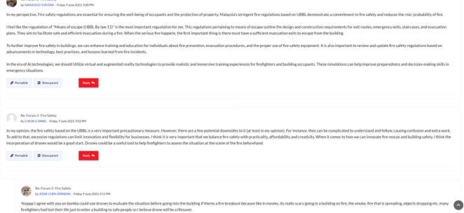 ABSTRACT : Malaysia has one of the most stringent fire regulations in the world. If any submission do not meet UBBL Standards, BOMBA will require us to simulate an alternative performance based option before obtaining approval. What is your opinion on our Fire Safety based on UBBL? Which regulations do you feel are most important and what would your recommendations be to further improve fire safety in buildings? Do you have other methods how we can innovate fire rescue and building safety? Discuss. (You could also argue that the requirements are too stringent and suggest ways how we could reduce them to allow more creativity in building design).