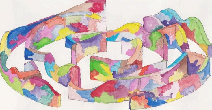 Each maze was constructed in Revit, then brought to the physical world through watercolor painting.