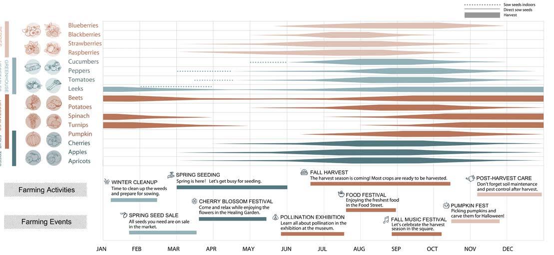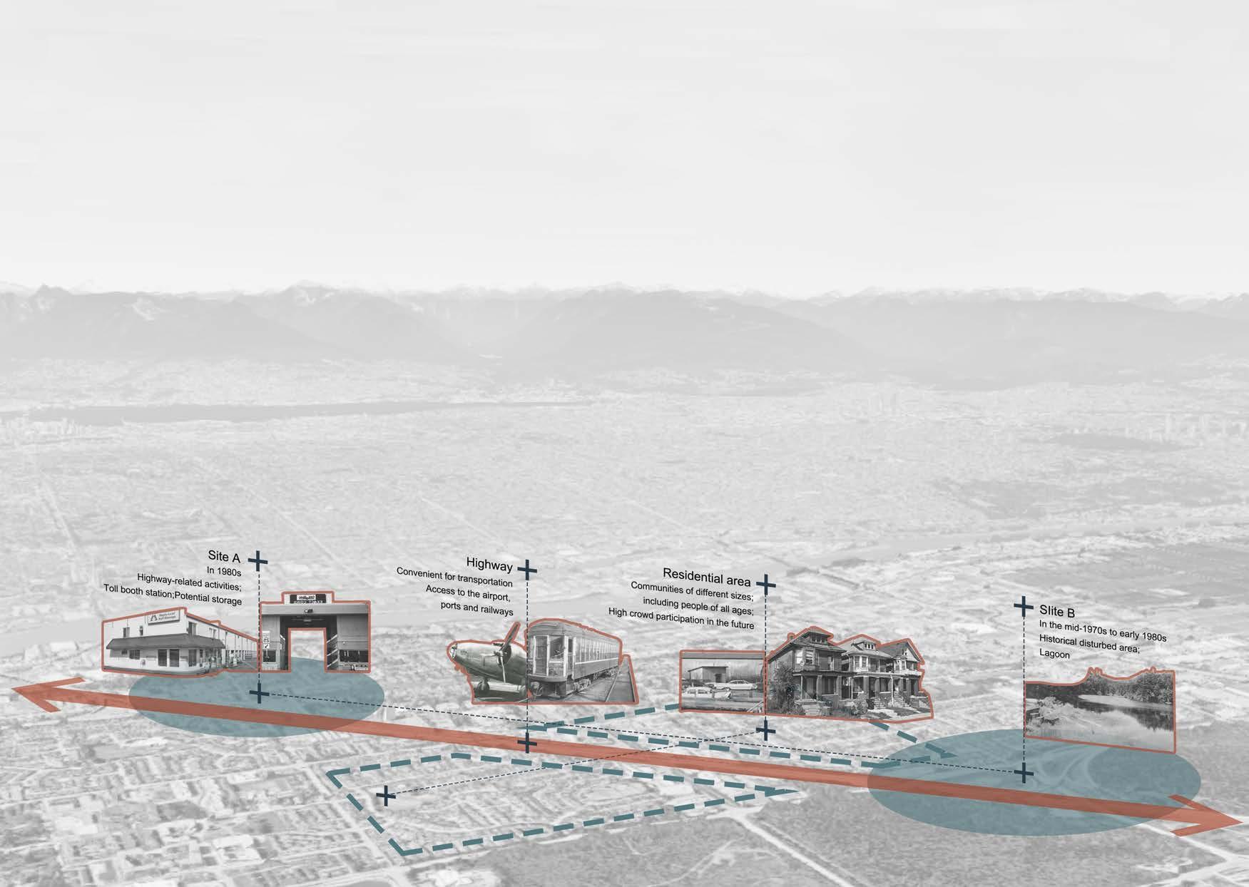 Richmond's roots are deeply embedded in agriculture, but as the city has modernized, much of its farmland has been cut up by major roads and bridges. This change has left some communities feeling disconnected and led to the neglect of once-thriving agricultural lands. Recognizing these challenges, the design strategy aims to tackle both environmental issues and social disconnection. The project plan to rejuvenate the area with a focus on agricultural themes, creating a series of engaging spaces to encourage community interaction and rekindle an interest in farming.The vision is to weave these elements into a green, productive corridor, transforming Richmond into a model for post-industrial, agrarian urban living.
