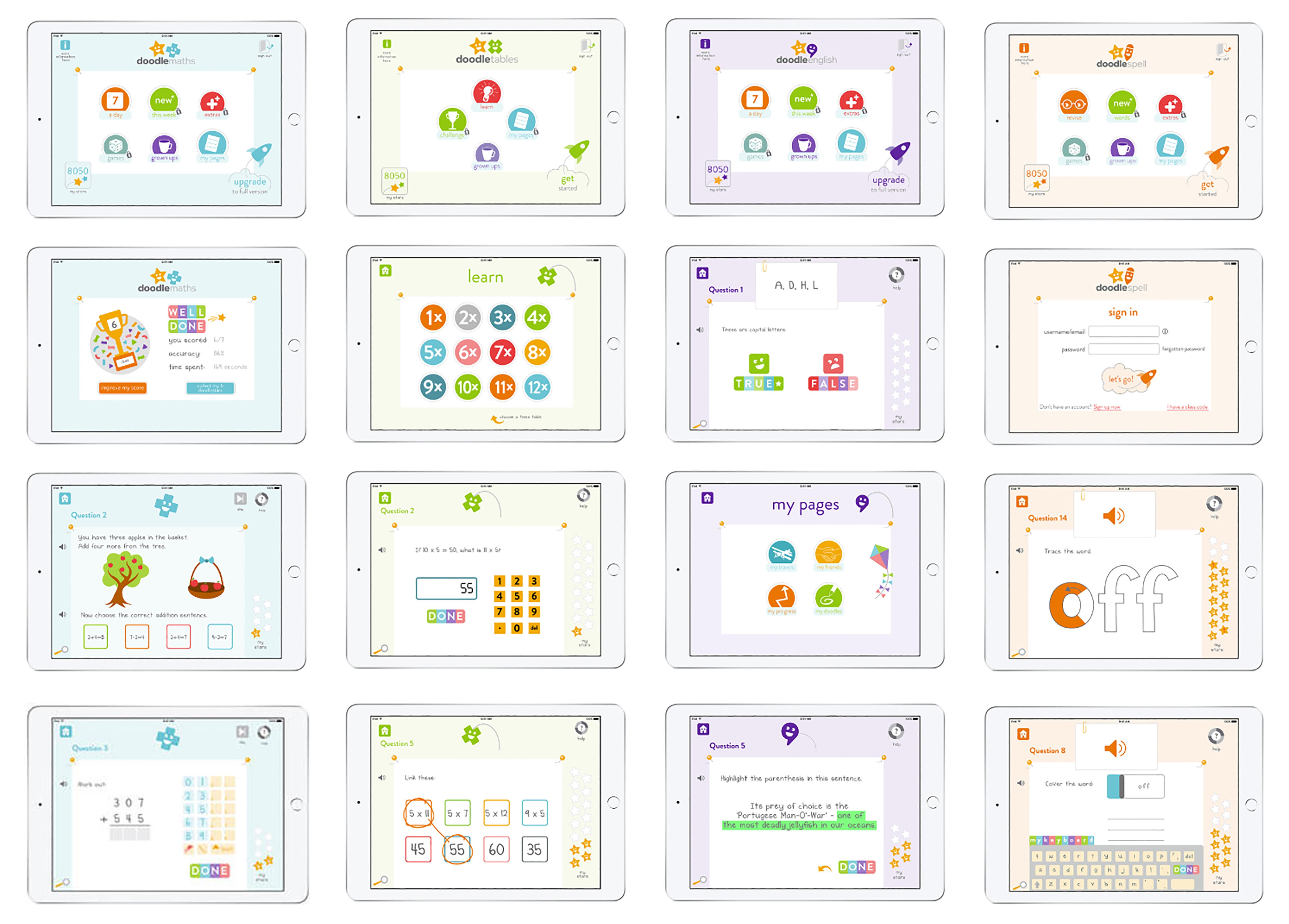 I worked as a Graphic Design intern for DoodleMaths, which is an educational application for children. I was briefed to rebrand DoodleMaths and design three additional applications, DoodleEnglish, DoodleSpell and DoodleTables. I created a brand identity and a colour scheme and carried the rebrand out through all applications and marketing materials, using the Adobe Creative Suite.