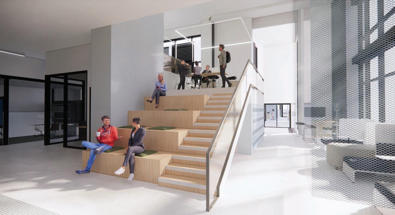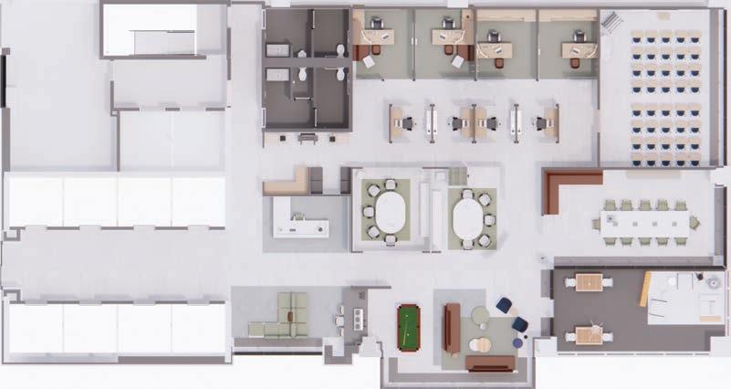 Implement spaces for team building and activities to occur: Flexible cafe for large gatherings, team lounge, coworking zones.