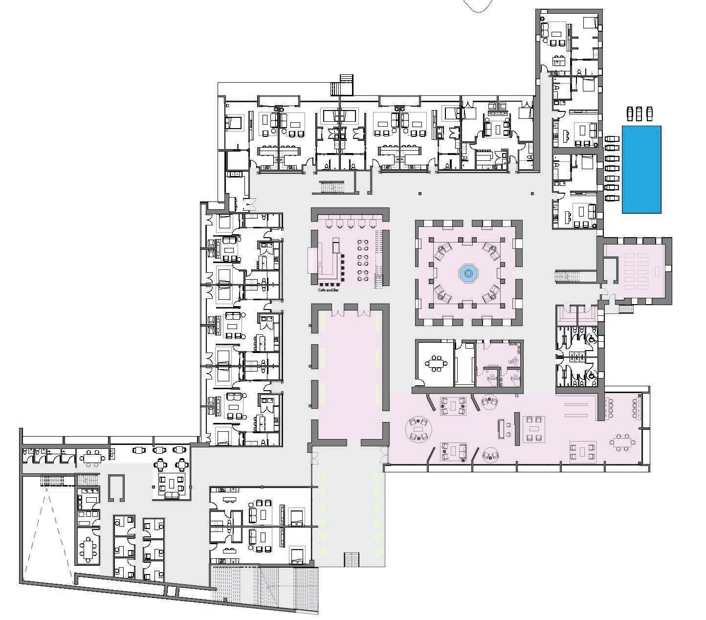 Wellness is implemented throughout the building maximized on every floor with windows and a central brought into the space through planter boxes and wall of the archive. Lastly, acoustic solutions are